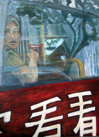 left of the painting. She is